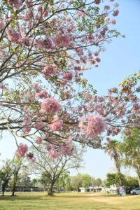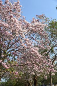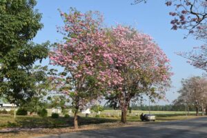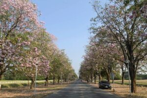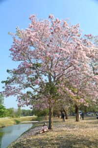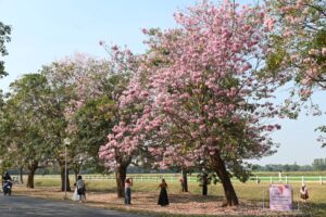 ดอกชมพูพันธุ์ทิพย์เริ่มบานสะพรั่งแล้วที่มหาวิทยาลัยเกษตรศาสตร์ วิทยาเขตกำแพงแสน โดยทางเพจมหาวิทยาลัย โพสต์อัปเดตการบานของดอกชมพูพันธุ์ทิพย์ พบเริ่มบานเพิ่มขึ้นอีกต่อเนื่อง แต่เนื่องจากปีนี้มีดอกหลายระยะจึงสามารถพบเห็นการร่วงของดอกได้ในบางจุด และยังมีช่อดอกตูมรอการบานอยู่เป็นจำนวนมาก