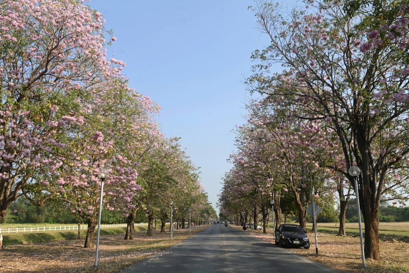 อัพเดตการบานของดอกชมพูพันธุ์ทิพย์ (13 ก.พ. 69) บริเวณถนนวัฒนา เสถียรสวัสดิ์ (หน้าโรงเรียนสาธิตฯ)