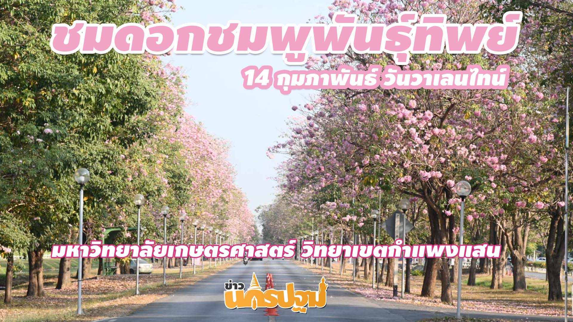 สวัสดีครับอยู่กับ “ข่าวนครปฐม” วันนี้ก็จะมาแนะนำสถานที่ท่องเที่ยวสำหรับวันพรุ่งนี้ซึ่งพรุ่งนี้เป็นวันพิเศษสำหรับหนุ่มๆสาวๆนะครับกับ วันที่ 14 กุมภาพันธ์ วันวาเลนไทน์นั่นเองนะครับ แล้วต้องบอกนะครับว่าประจวบเหมาะมากๆนะครับที่ดอกชมพูพันธุ์ทิพย์ที่ม.เกษตรกำแพงแสนนะครับกำลังเริ่มบานบานสวยงามมากๆนะครับ ซึ่งช่วงนี้จะเป็นช่วงกำลังเริ่มบานเลย